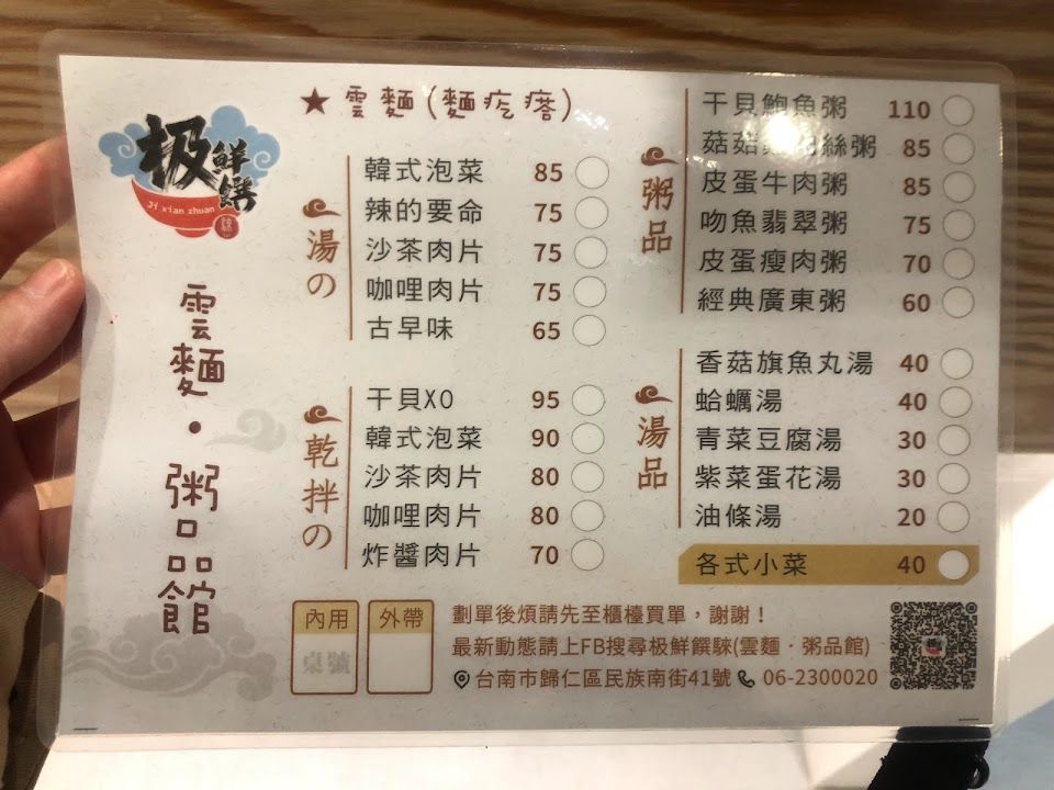 2024最新在地推薦餐廳的菜單_雲麵•粥品館(五色麵疙瘩、廣東粥)的菜單、圖片
