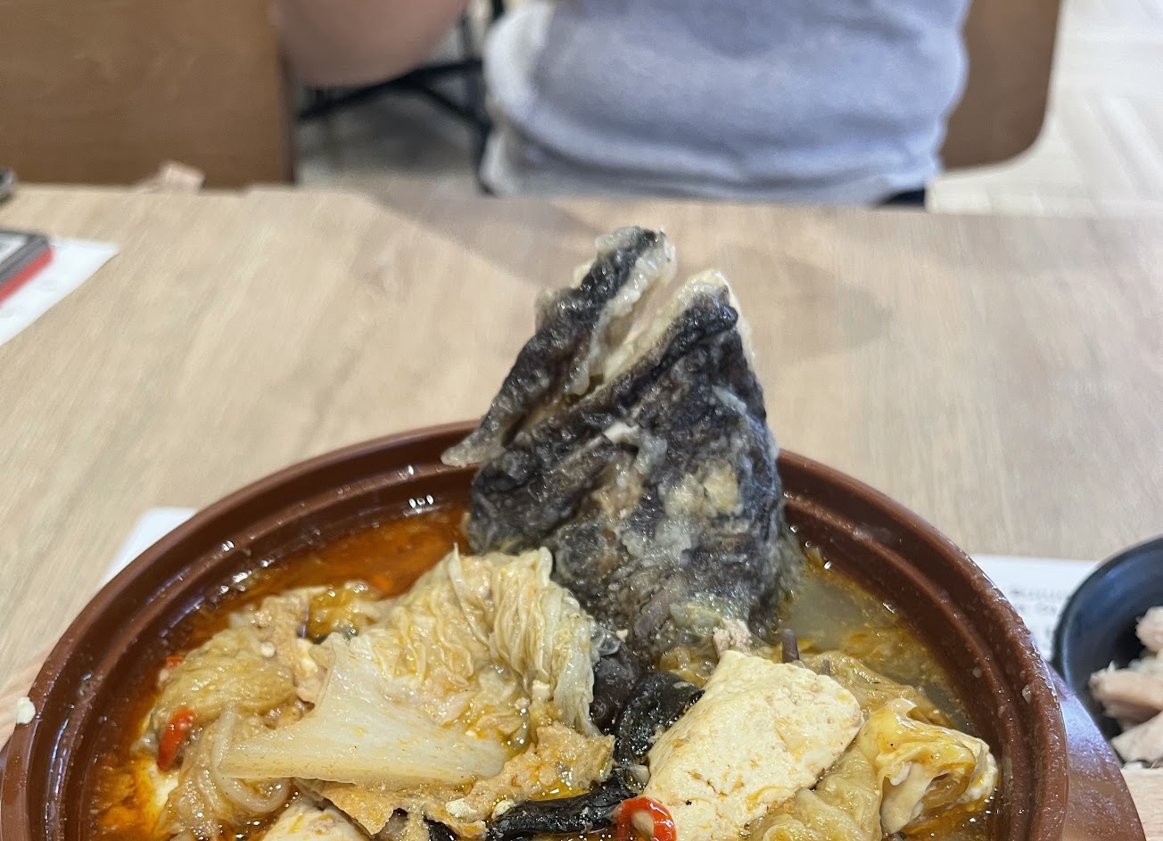 由於是在商場內無法加熱的狀態,原本的砂鍋菜是熱的,但是魚卻是涼的,泡10分鐘也不會熱,刺多又無法吃到熱的魚肉,真心推薦省下這兩百多元去吃其他的。如果單純點砂鍋菜應該會比較好,但是cp值是真的不太高。