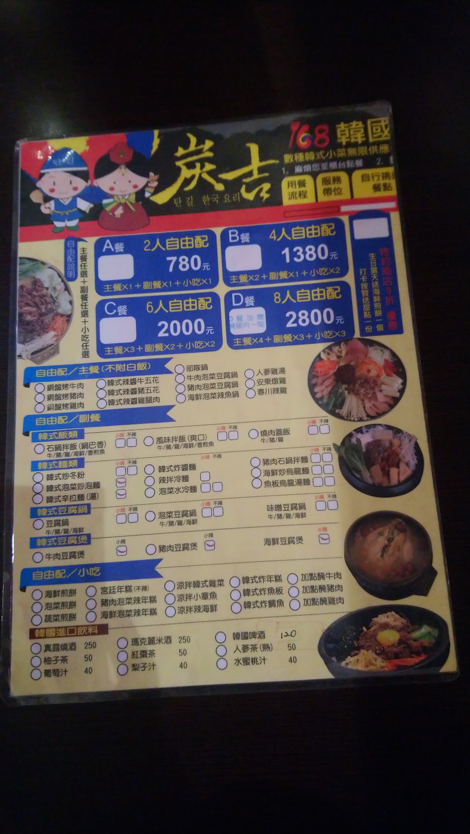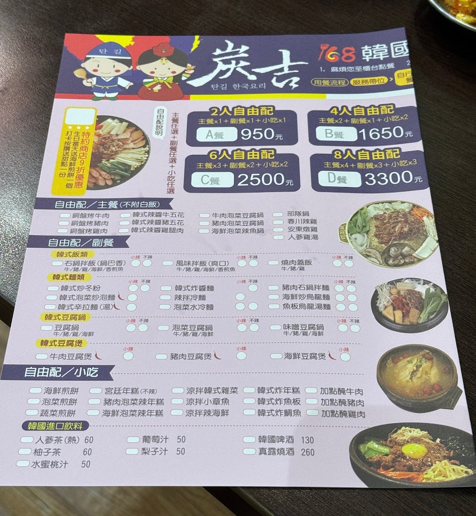 2024最新在地推薦餐廳的菜單_炭吉168韓國料理的菜單、圖片