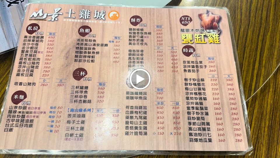 2024最新在地推薦餐廳的菜單_山景土雞城的菜單、圖片