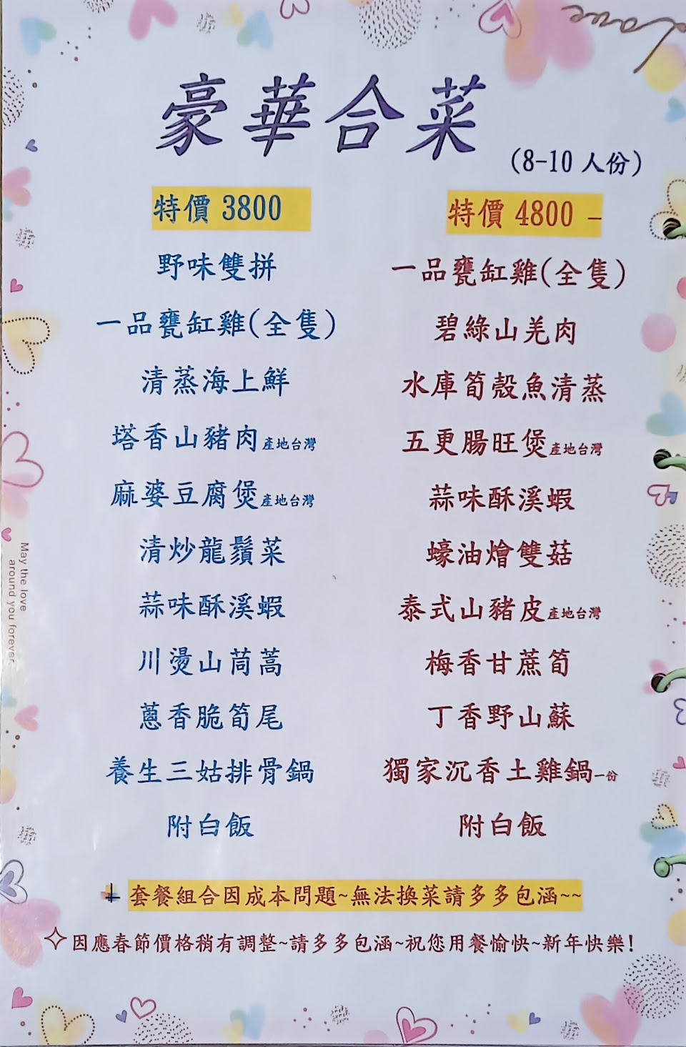 (備註:春節期間有漲費可接受,跟芳谷溫泉小棧配合有打9折。)