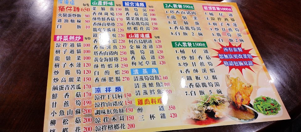 跟山友們下山來這家用餐,合菜經濟實惠,尤其烤雞的雞油來拌飯,讓大家多吃好幾碗。鐵板豆腐是大家一致要再點一次的菜,何首烏雞湯也很好喝,炸溪蝦也很酥脆,只是比較刮嘴。基本上合菜沒有雷,都很好吃,建議五人以上就可以點2,500的合菜了,我們是八大三小,點合菜再加點飯跟鐵板豆腐就吃超飽的。