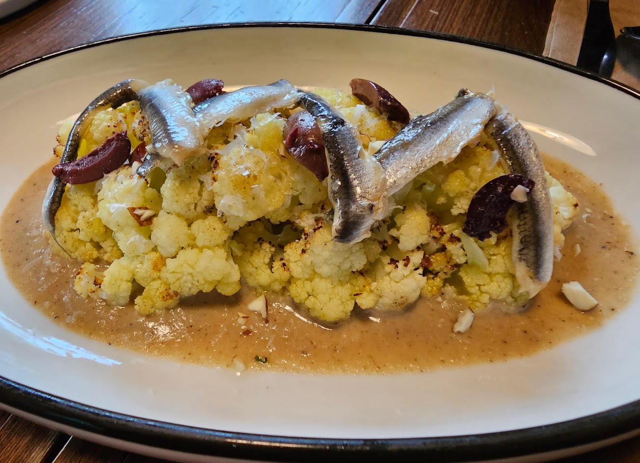 巴西里巴薩醋煎鰻魚,碳烤老饕牛排不錯!蛤蠣慢燉豬梅花肉,醋漬鯷魚烤白花椰菜,碳烤軟絲腰果醬, 康普茶芒果鳳梨!