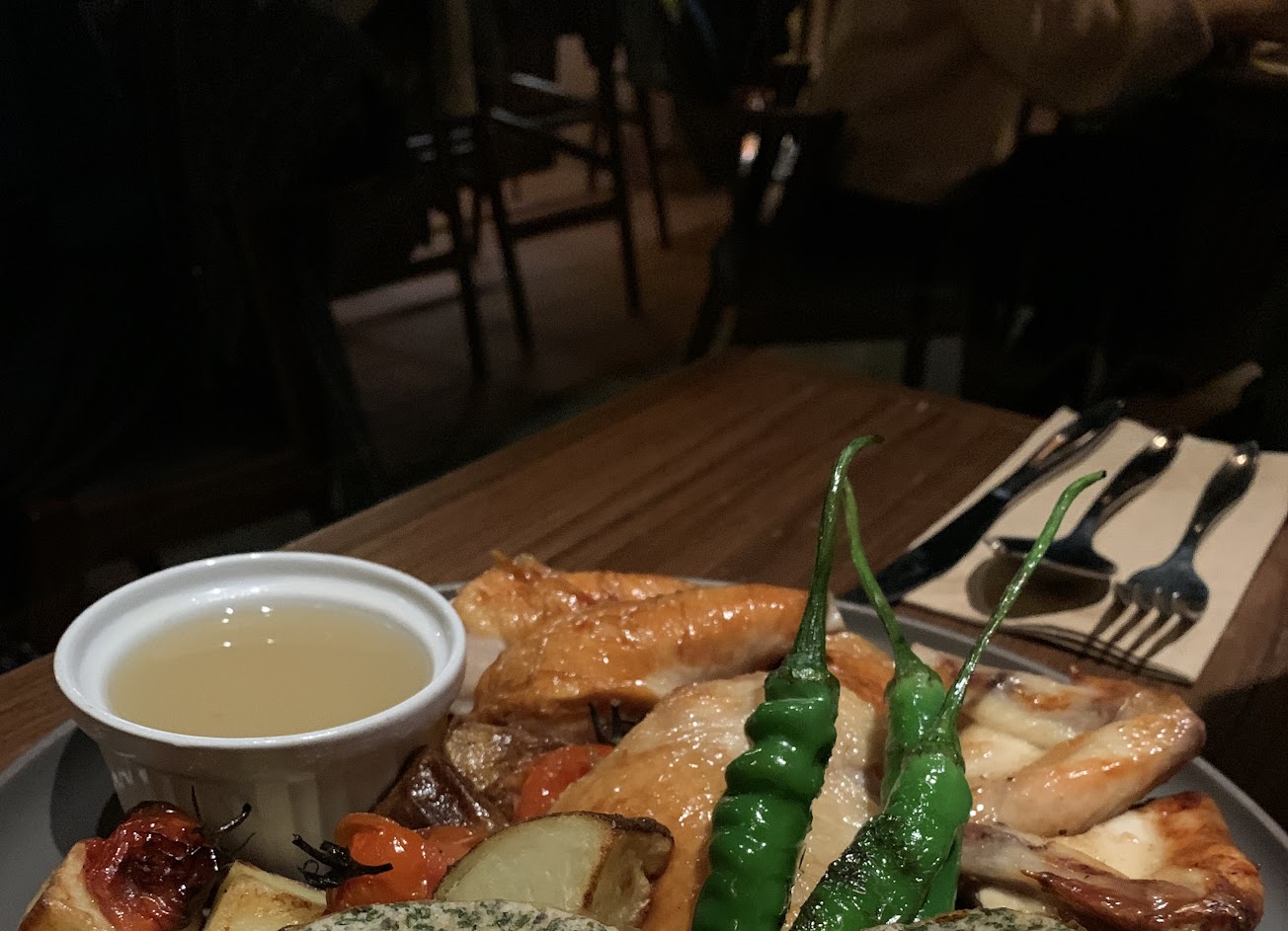 爐烤鑲餡全雞跟炭烤戰斧豬可以說是招牌菜,火候掌握的非常好,皮薄鮮脆,肉質柔嫩多汁,搭配的香料、烤時蔬也都各自精彩,記得想吃要先預訂。