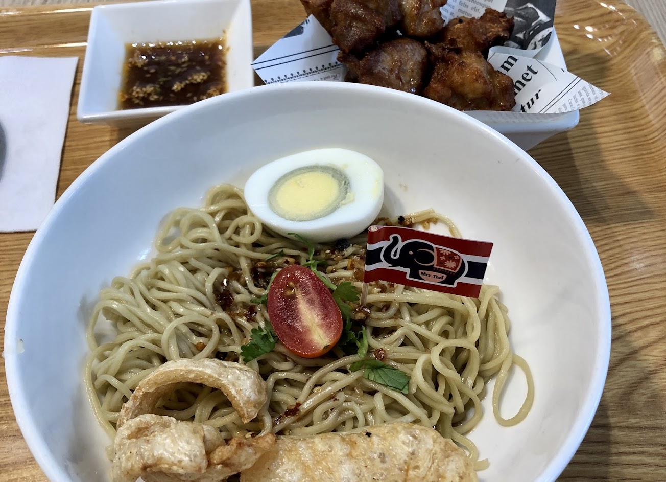 炸雞乾拌跟綠咖哩,餐點精緻賣相佳,味道也不錯,下次會想試試看湯麵應該也很好吃,辣度也都不辣(可能我重口味會想吃更辣哈哈)但最值得一提的是,服務人員態度親切服務周到,而且出餐速度也很快,推推