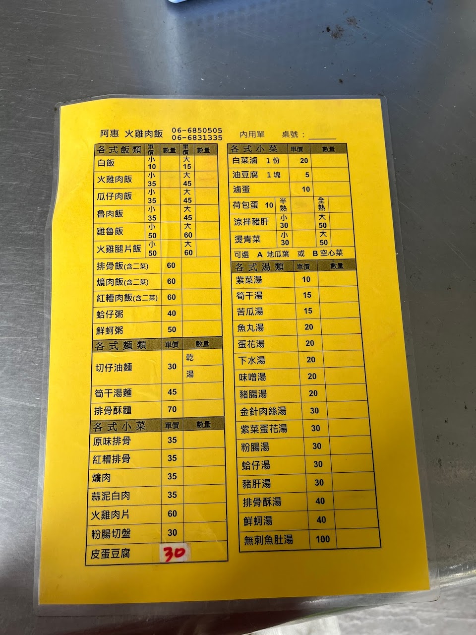 2024最新在地推薦餐廳的菜單_白河阿惠火雞肉飯的菜單、圖片
