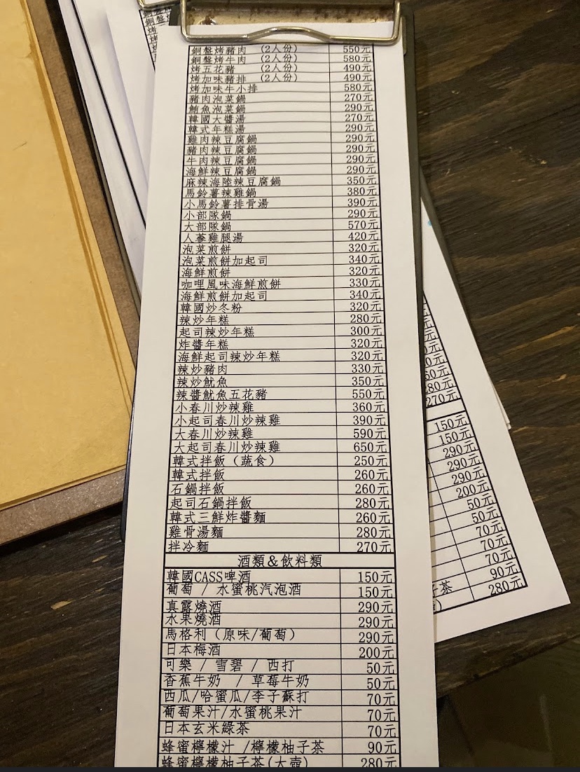今年二月在韓國吃到馬鈴薯排骨湯被驚豔到了,回來後意外在這發現這道料理超開心,雖然還是韓國吃的好吃但也有80分了,兩個服務生應該是新手,對餐點內容不夠熟悉,也忘了提供我們這桌引用水,餐桌打掃還需要兩人同時,效率不好,我覺得在電內最忙的就是闆娘了,又要煮又要處理客訴 服務 內用 餐點類型 晚餐 平均每人消費金額 $600-800 餐點:5 服務:4 氣氛:4 建議的餐點 韓式炸醬麵 海鮮煎餅 特殊餐點 馬鈴薯排骨湯這道料理在台灣比較少吃到