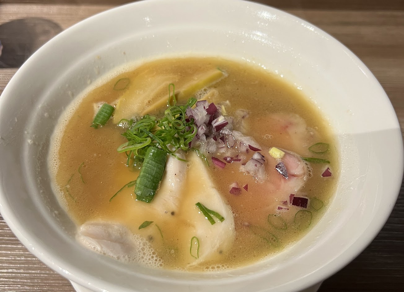 整體非個人口味,風味上的呈現魚鮮大於雞鮮,有點像在喝鰹魚清湯,細麵的口感也非個人喜好