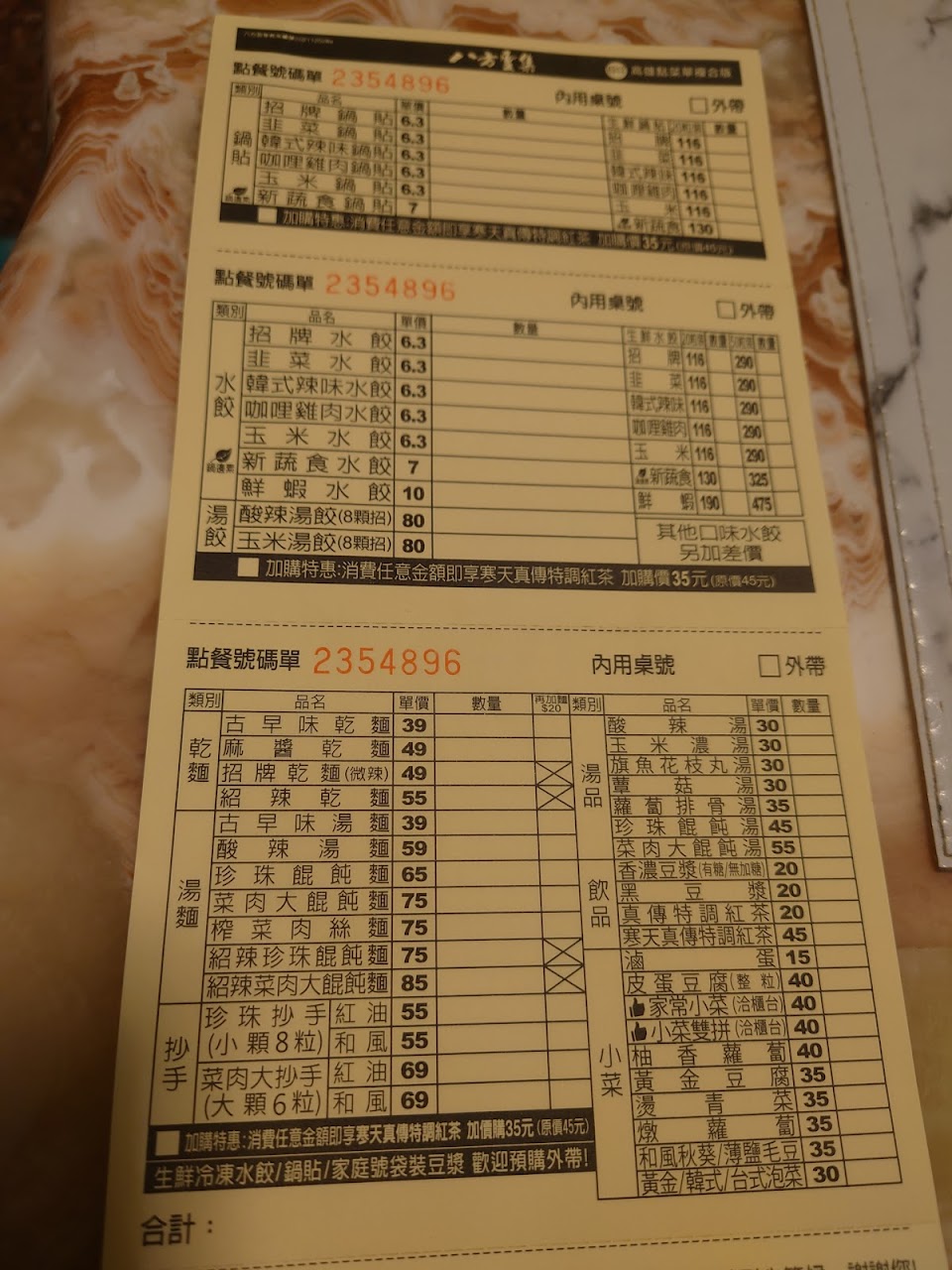 點外送的,最近新出的松露蕈菇水餃好吃,松露味蠻香濃,黑豆漿也不錯喝,袋子裡面有隻鉛筆,不知道是不是誤放