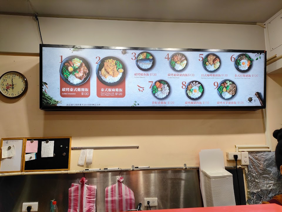 可以讓學生吃的粗飽的便當店。白飯例湯,沙茶炒麵都有得吃。口味頗鹹