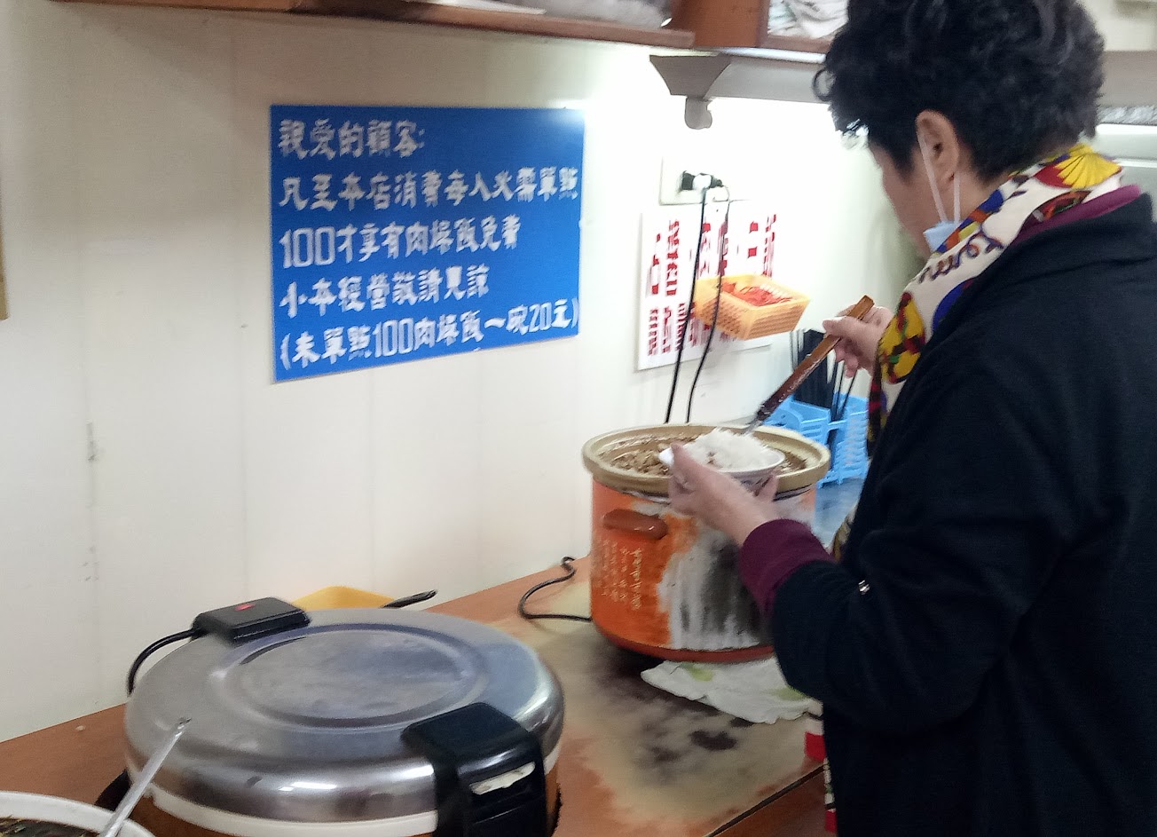 點100元的菜,則滷肉飯不用錢自己盛。