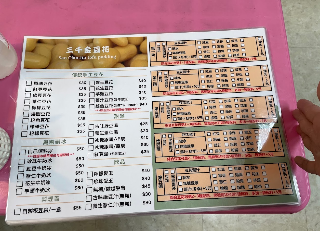 2024最新在地推薦餐廳的菜單_三千金豆花攤/豆花俊:San Cian Jin tofu pudding(週一固定公休、週二不固定公休)的菜單、圖片