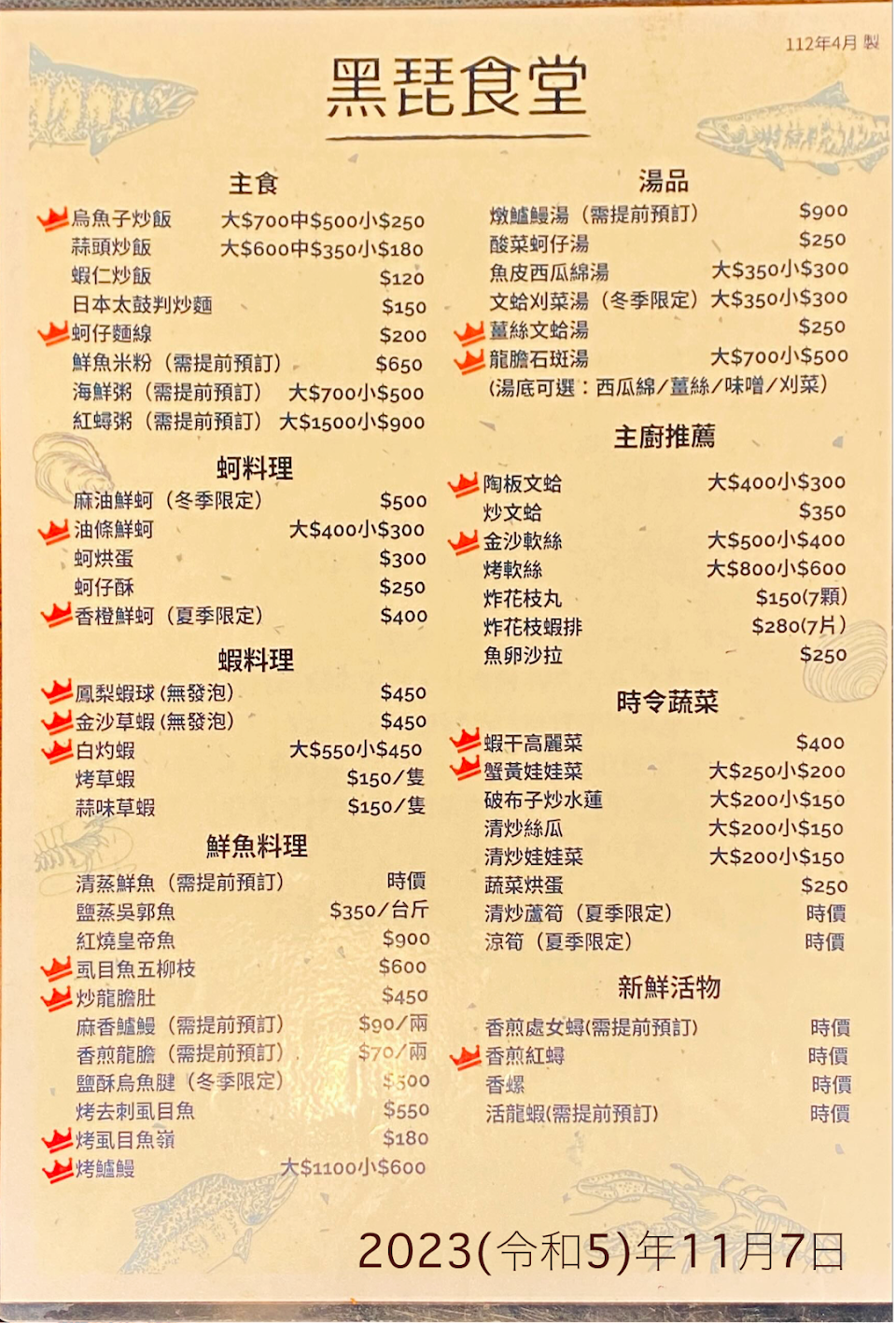 2024最新在地推薦餐廳的菜單_黑琵食堂餐廳的菜單、圖片