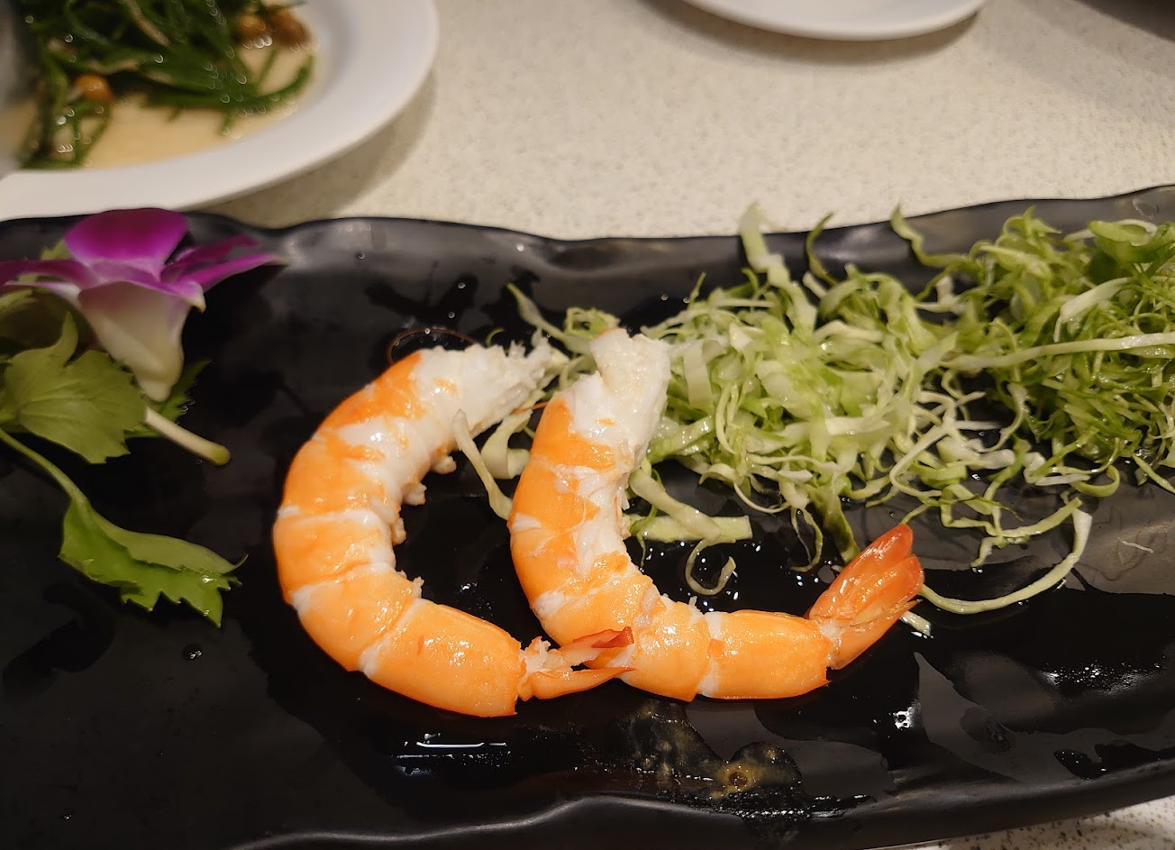 海鮮餐廳主打當然是食材「新鮮」,緊臨「七股水產產銷班」,會讓人以為都是活體海鮮供應,當大草蝦是用鹽焗料理,而且闆娘直言「清蒸在自家煮就好了,來這兒就是吃這味」,完全吃不到活蝦的juicy鮮甜多汁,也沒有Q脆的口感,只有豪邁的盤子粗糙的擺盤,還有很難撥離的蝦殼…
