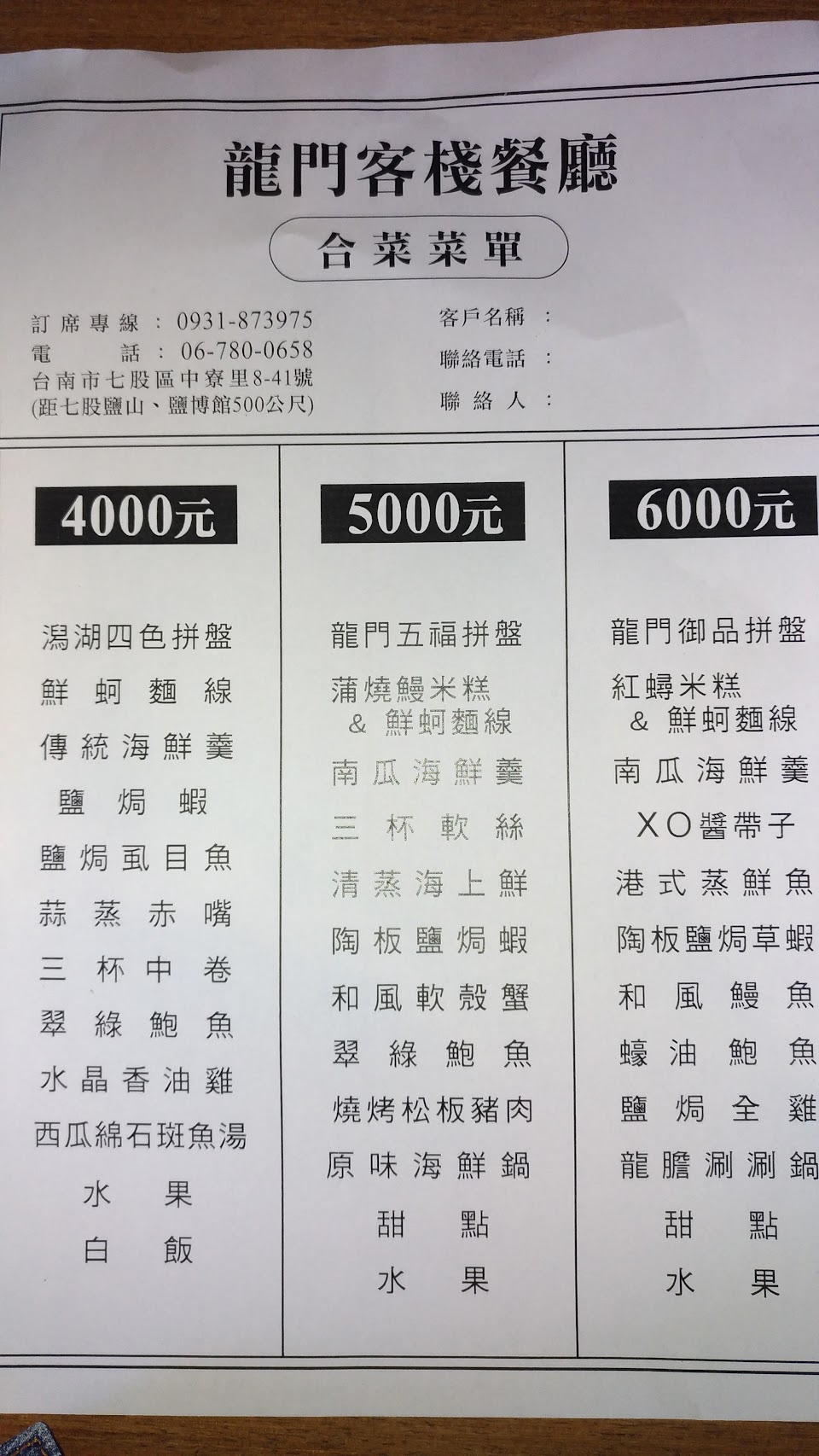 2024最新在地推薦餐廳的菜單_龍門客棧休閒海鮮餐廳的菜單、圖片
