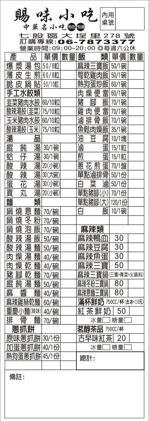 2024最新在地推薦餐廳的菜單_賜味小吃的菜單、圖片