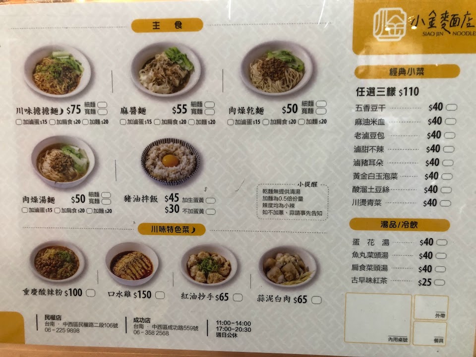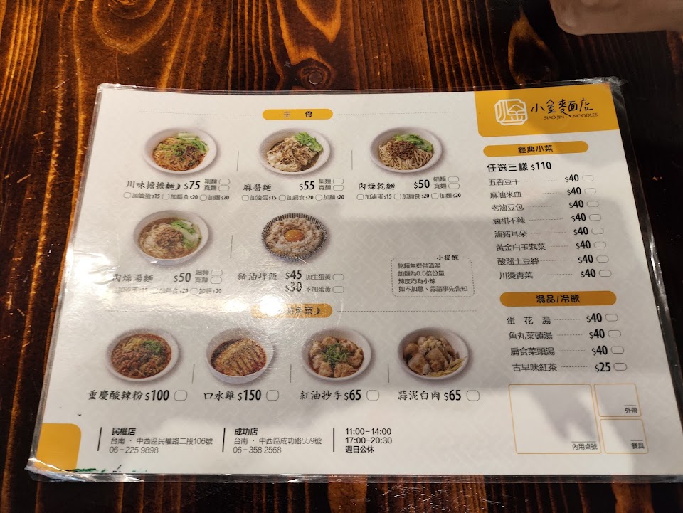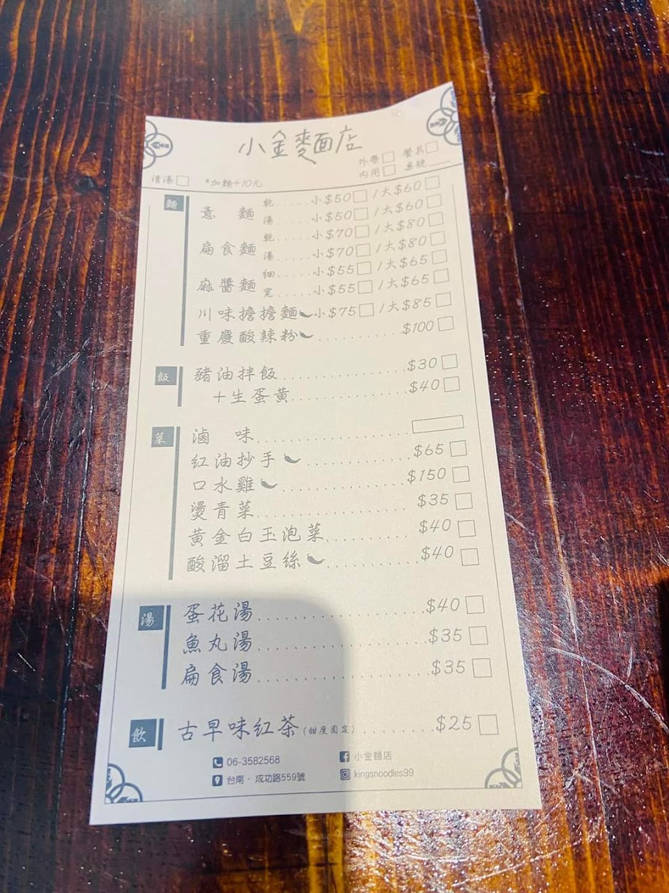 2024最新在地推薦餐廳的菜單_小金麵店 成功店/中西區美食/中西區麵店/中西區小吃/台南意麵/中西區酸辣粉/附近美食的菜單、圖片