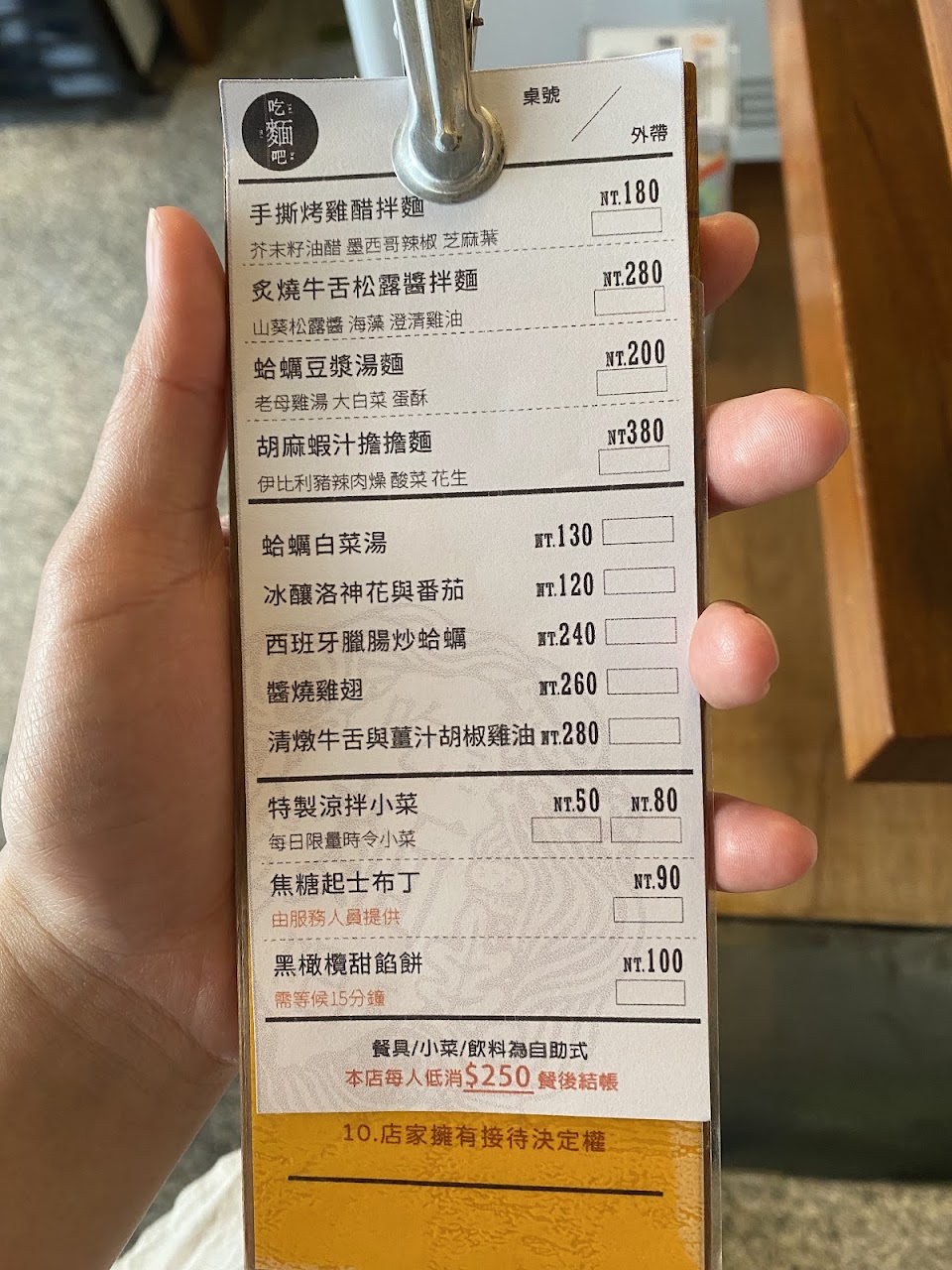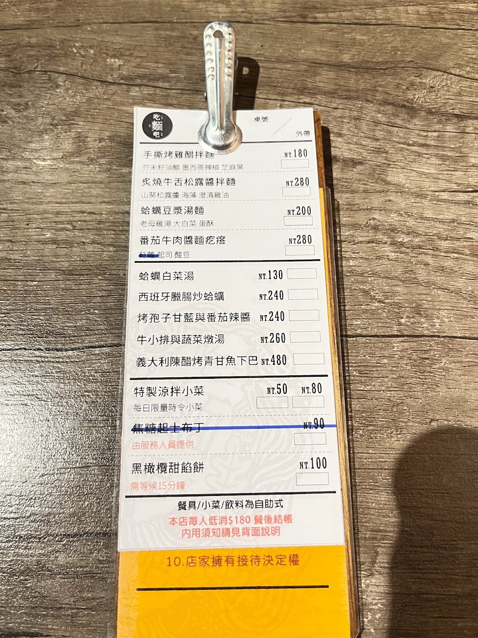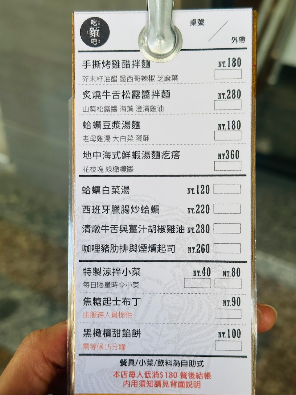 這次點了蛤蜊豆漿麵,禮拜天晚上7點左右還是需要等個15分鐘才會有位子。