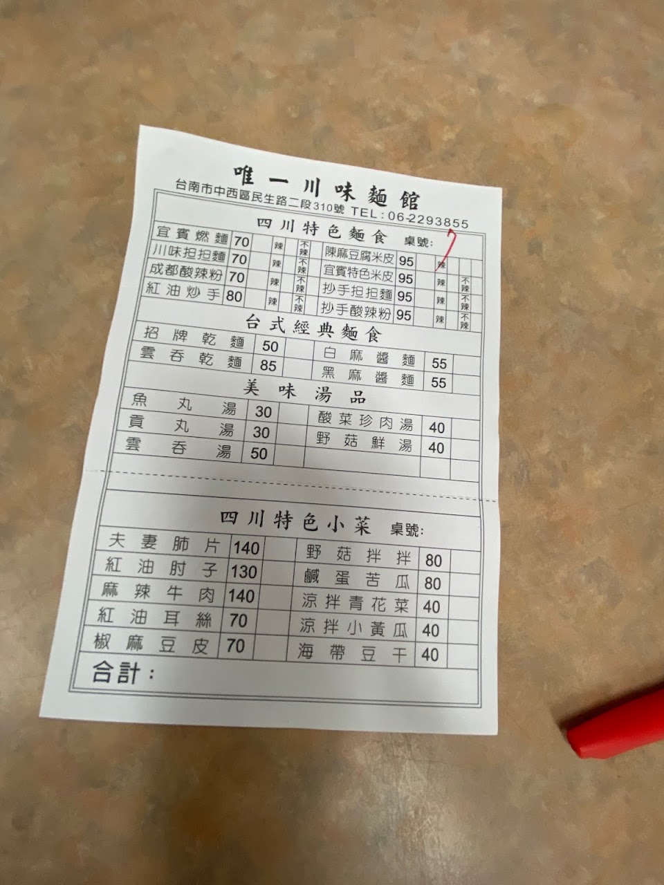 2024最新在地推薦餐廳的菜單_唯一川味麵館的菜單、圖片