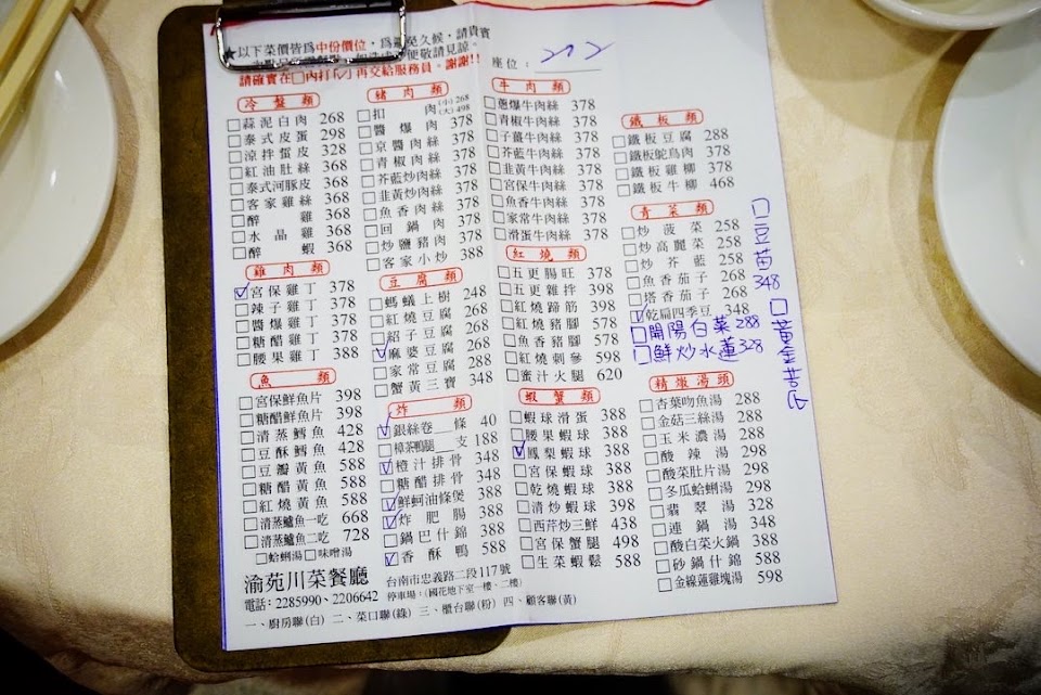 出菜還算是很快速,但口感的部分沒有如預期得好。朋友都說他是適合台南人吃的川菜,我一直吃還沒有太明顯的感覺,但是他的確是非常多台南人非常喜歡的川菜餐廳,至於我個人⋯⋯評比應該是中等。