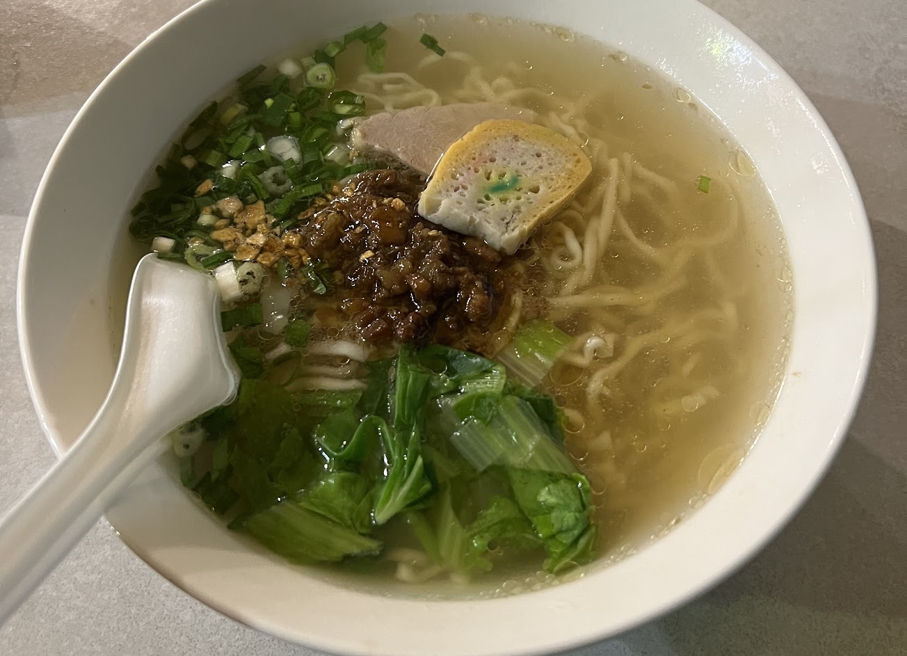 魚丸湯的魚丸是軟軟的不是硬脆型,湯的鹹淡剛好很適合搭配乾麵吃。