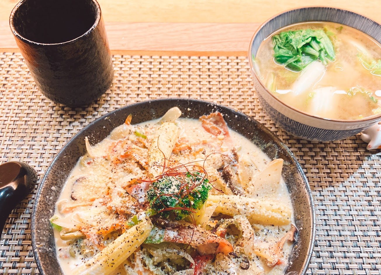 奶茶麵太好吃了吧~~~是白醬加抹茶麵,奶香味很夠卻不膩,麵條也非常Q彈有彈性🥰讓平常幾乎不太吃白醬的我,直接被收服了。