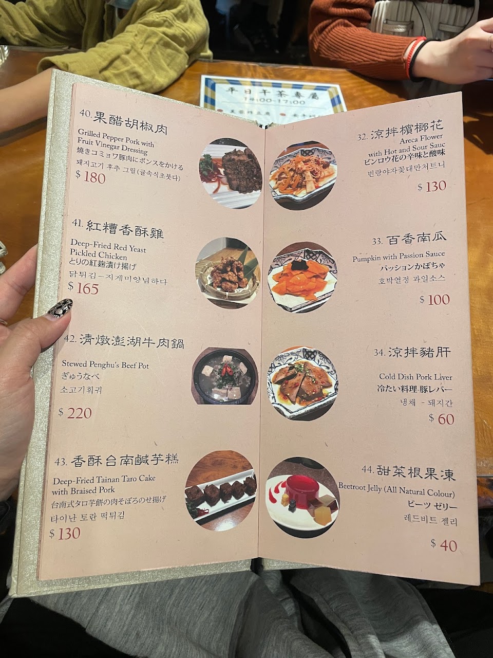經過核對菜單之後才發現,原來餐廳不知道我們有點其他小吃類,根本直接漏掉我們其他的菜,而且我們並不是加點,是第一輪的。明明都寫在同一張紙上怎麼會漏掉,而且一次漏掉四道菜(都是台南經典小吃…),只上食飯麵跟一個前菜及飲料…真的是很傻眼。