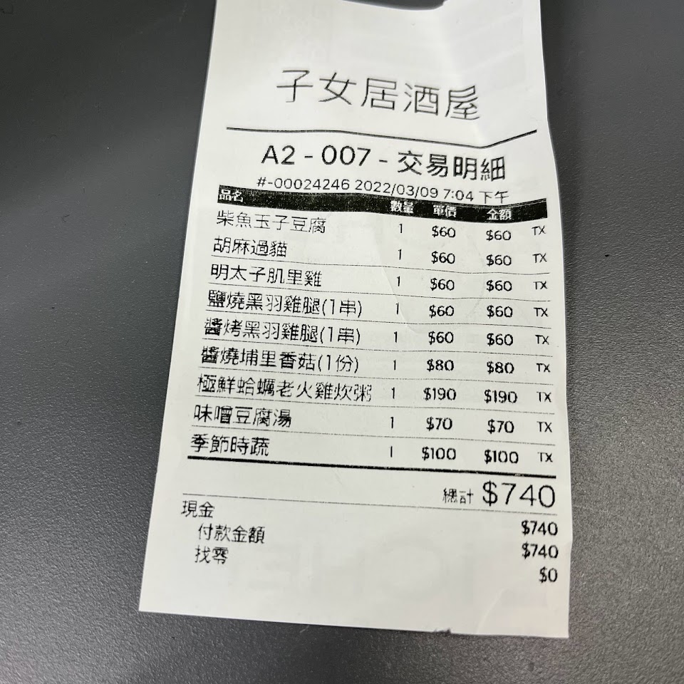 環境氣氛很好,串烤幾乎點的都很好吃,中卷粥也是CP值很高,服務員的態度都很有耐心,很適合聚餐或煩悶的下班後來小酌一下的好地方,有機會會再來。