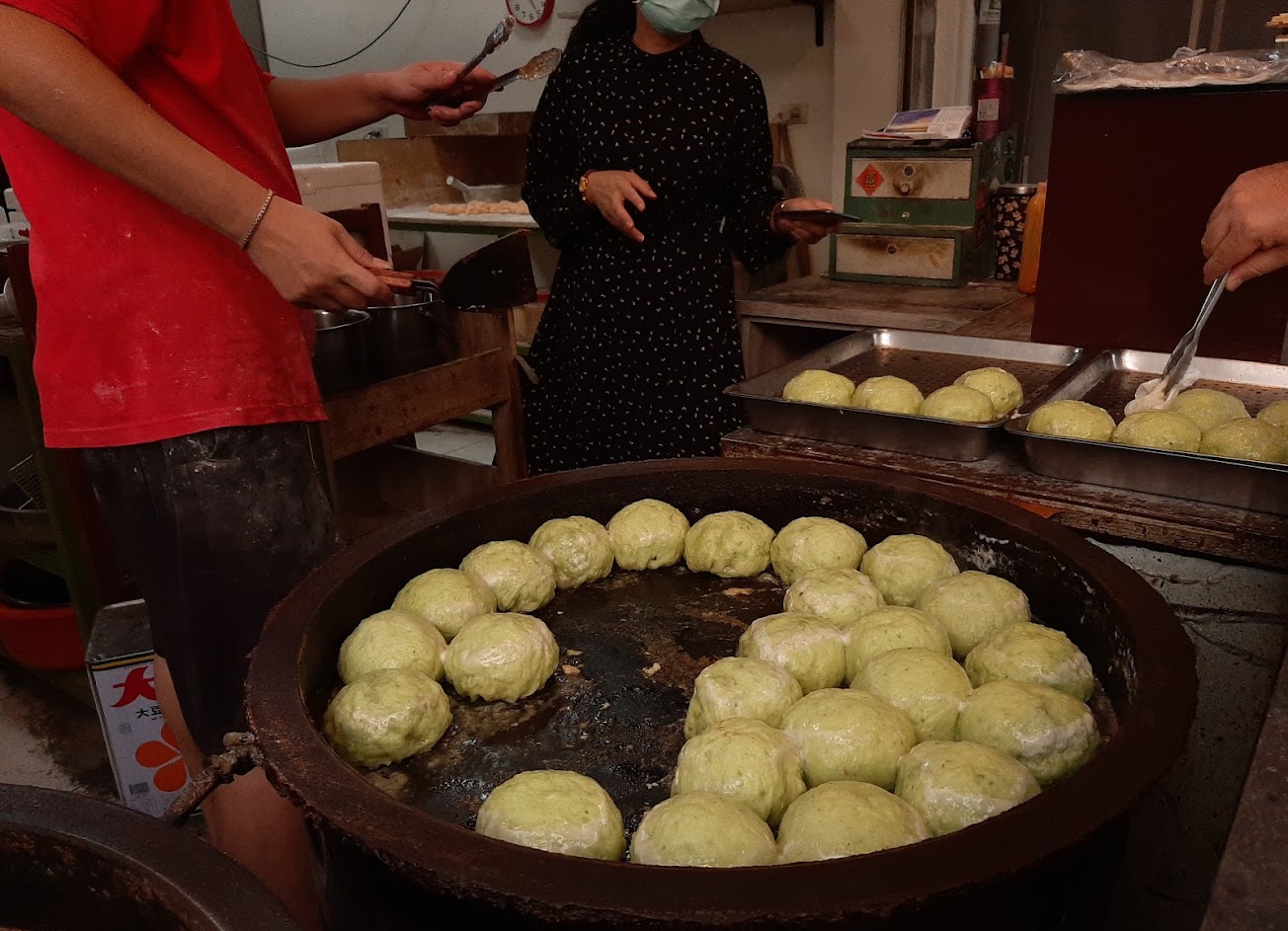 生煎包顏色很特別 現點現做 平日下午 也生意很好 東西好吃 20塊便宜