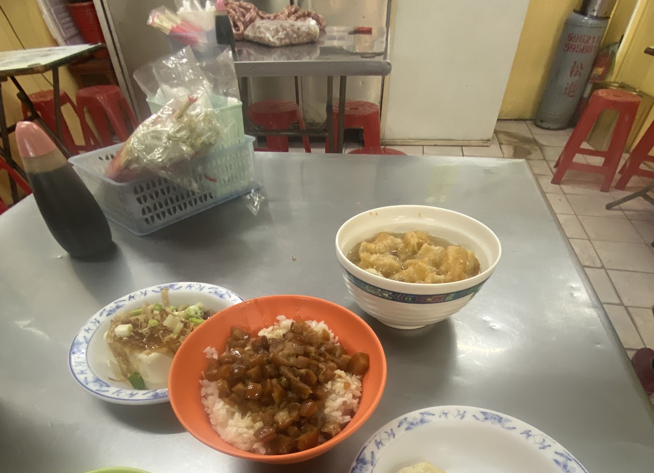 肉燥飯好吃,飯粒是ok的,魚肉偏“呼”,魚皮上有太多魚肉口感沒那麼好,豆皮稍油但口感嫩,魚丸偏甜不辣感。可以在這裡悠閒的吃一頓飯,還24小時營業,要求再多會太奢侈了。