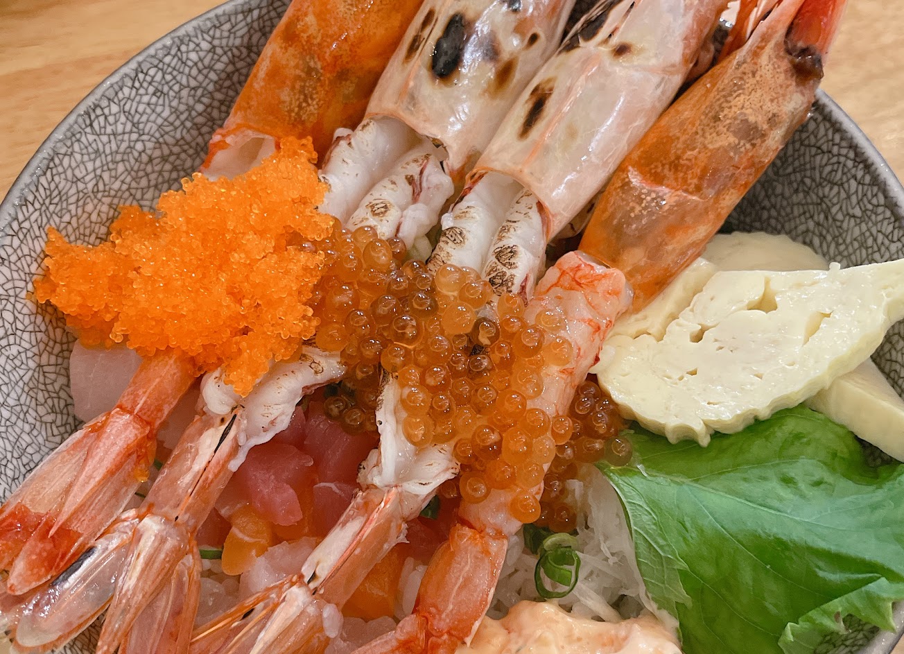 丼飯的新鮮度與品質更是不在話下,痛風丼原有天使紅蝦,但因個人過敏因素請老闆換成生蠔