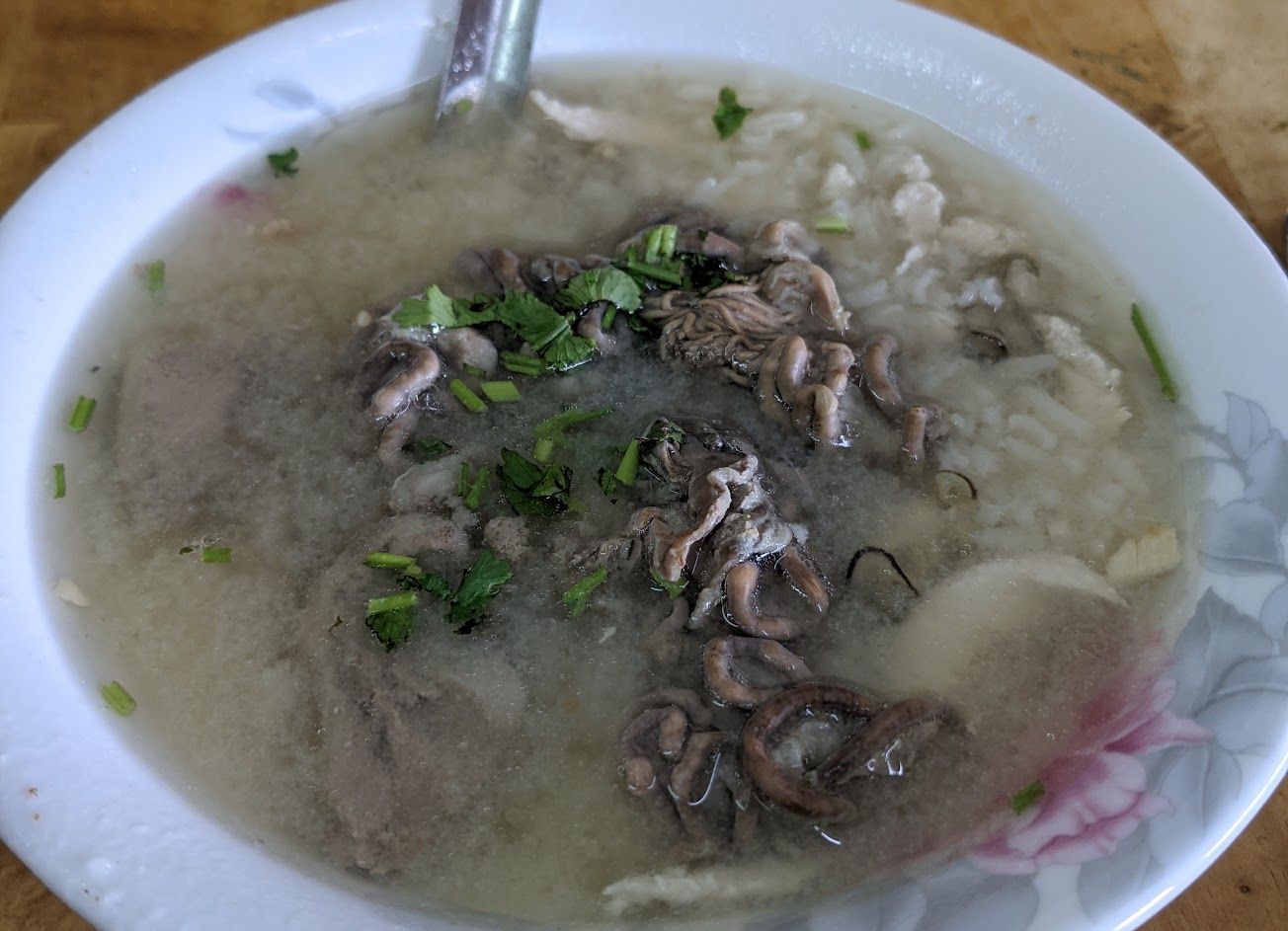 虱目魚粥,魚肉鮮嫩,還有鮮蚵仔肉嫩,湯頭順口。