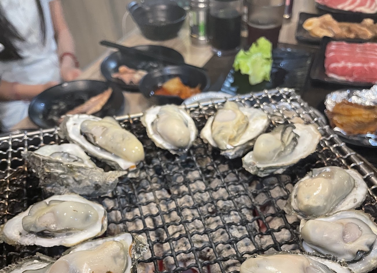 看評論來嚐鮮看看,食材選擇蠻多的,店員「小張」服務超讚?很親切、幫忙烤餅跟麻糬很好吃,蚵仔很新鮮,羊肉片好吃?生菜鮮脆搭配肉片一級棒。停車位不好停、兩個小時真的可以吃很飽、座位蚊子有點多?啤酒很便宜。