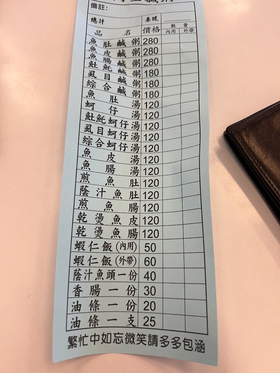 此外,內用點粥要等四十分鐘以上,感覺上似乎會優先做外帶,且等點了,即使還沒做也不給退餐,這點要很思考。