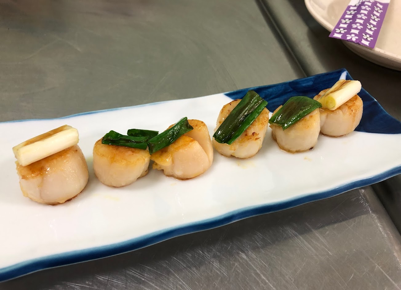 今日點了招牌海產意麵($140)與奶油煎干貝($160),湯料海產新鮮,蝦子鮮味十足蛤蠣很大顆,但是湯頭感覺一般,蒜頭油酥加很多。