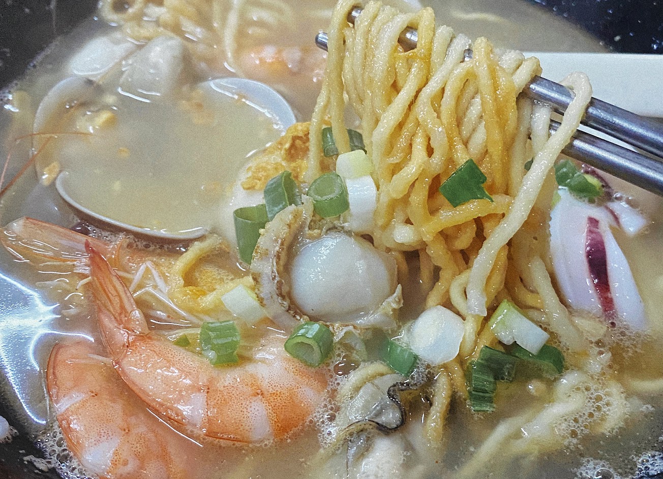 因為南部的粥是湯泡飯,個人不愛,因此點招牌意麵,海鮮裡有四隻白蝦、蛤蠣、小卷、蚵仔、鮑魚片、扇貝,種類非常多,但個個都十分新鮮鮮美,每種食材熟度拿捏的非常剛好,口感不在話下!