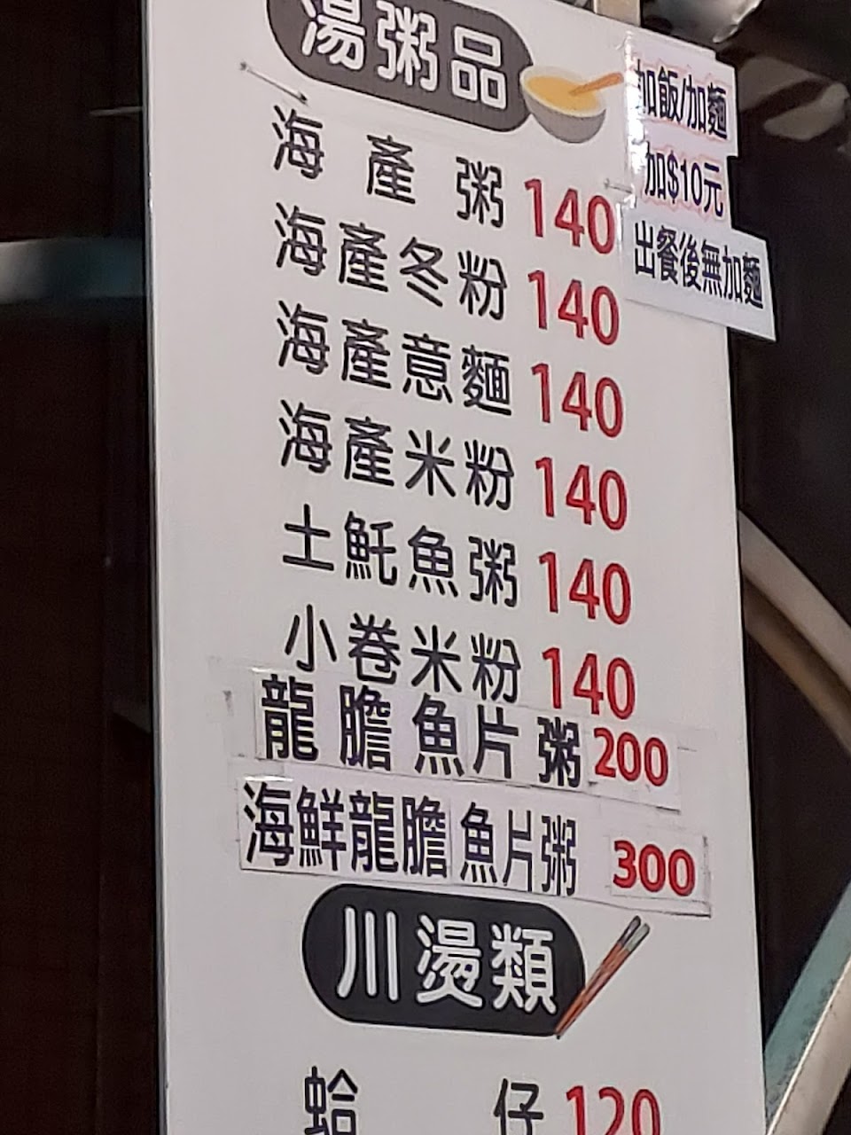 2024最新在地推薦餐廳的菜單_阿澎海產粥成功店的菜單、圖片