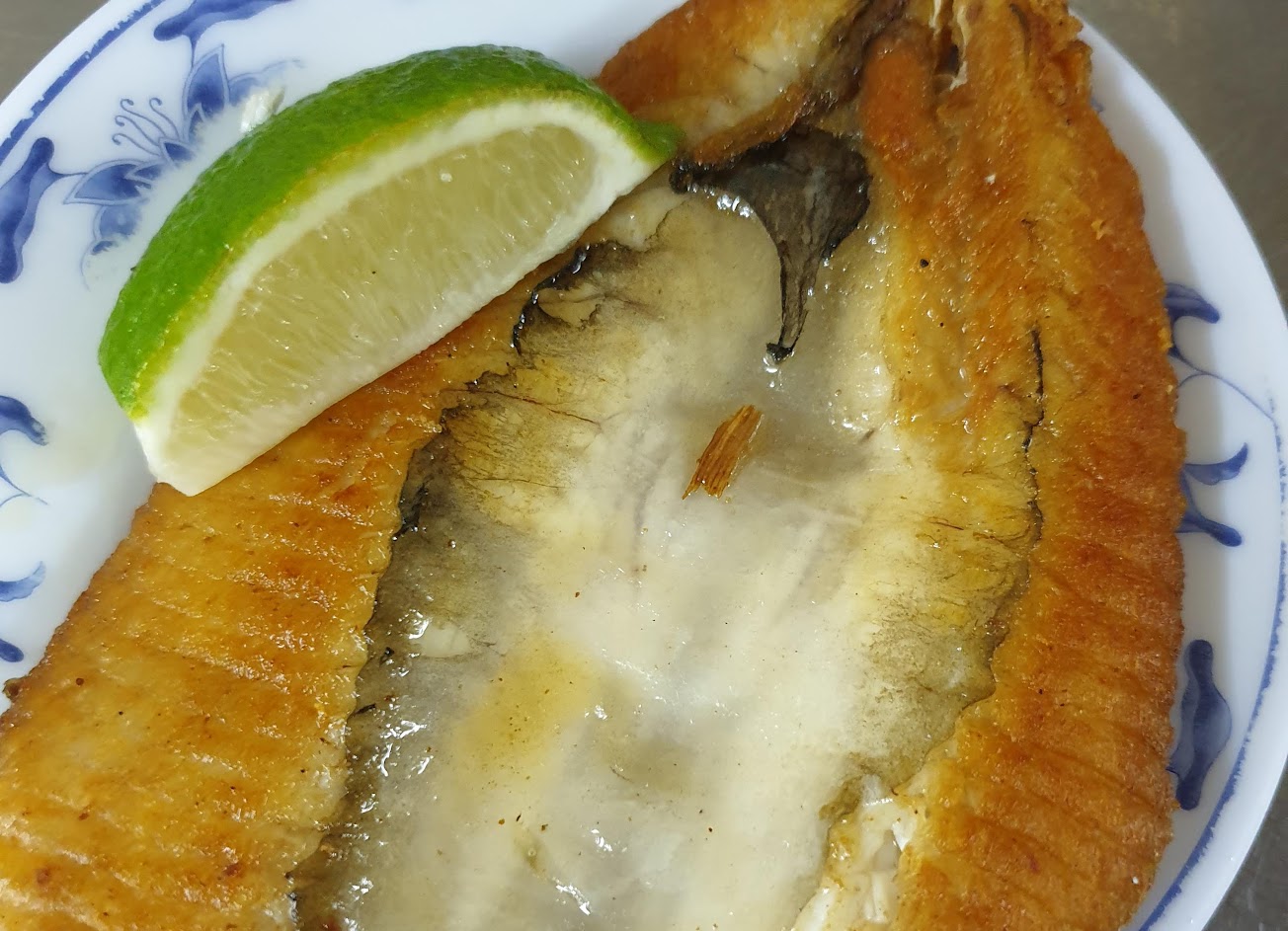 好吃,煎魚肚外酥內嫩,擠上檸檬更添清香。