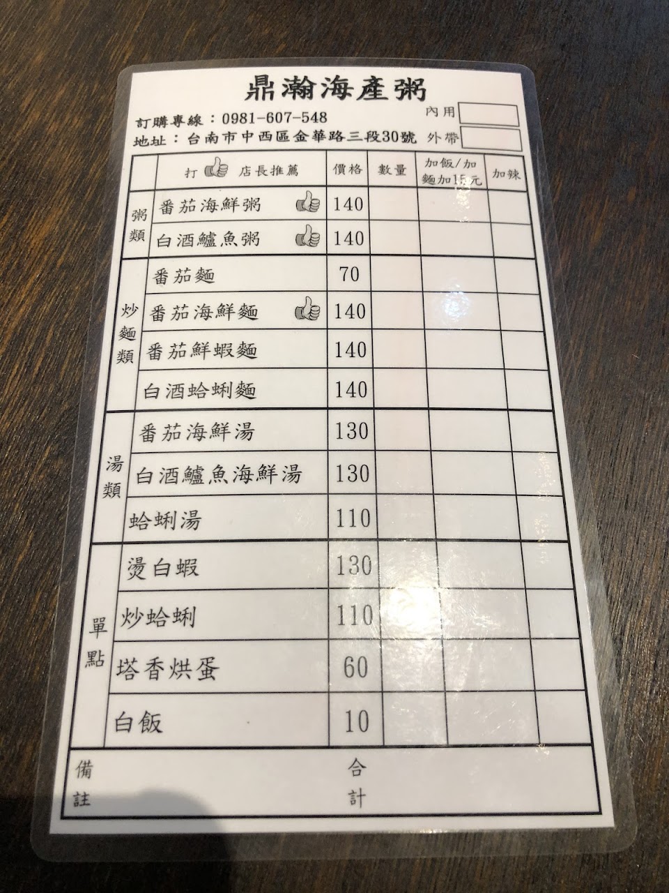 2024最新在地推薦餐廳的菜單_鼎瀚海產粥的菜單、圖片