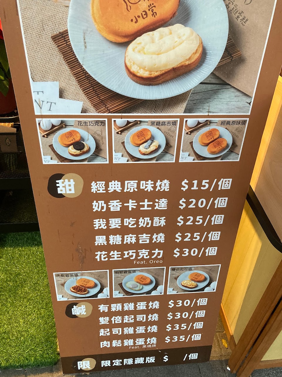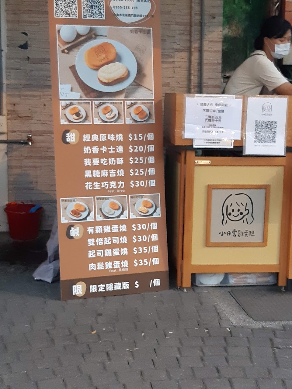 小小文青的店,買了卡士達、奶酥、雙倍起司、有顆雞蛋燒,這幾樣都很好吃,烙印在雞蛋糕的圖樣很可愛~