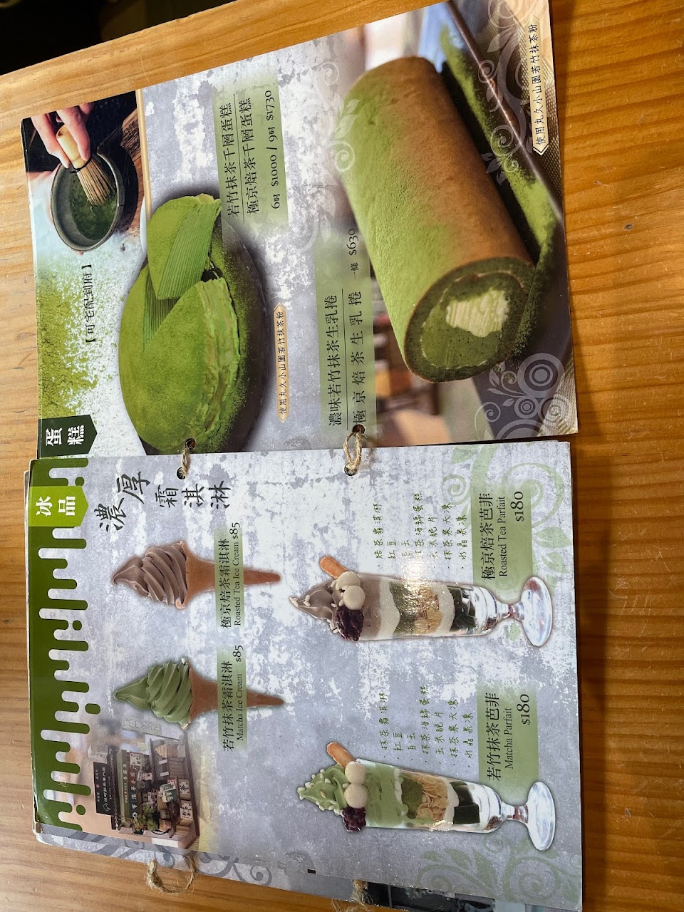 抹茶冰淇淋,焙茶冰淇淋都很好吃,生乳卷也好吃,內用每人低消130