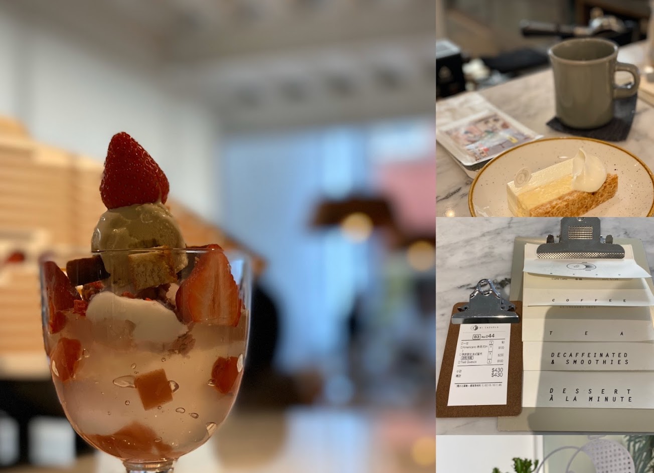 可預訂也有保留一半現場候位,準時到時已經排了十來個人,只好先留資料,四處走走再回頭等叫號… 沒想到其實翻桌挺快的,過號還是能補上,只是實驗千層已經售罄…QQ 單點櫥窗內的甜品,三種乳酪蛋糕最推,不過度甜膩、香氣及口感也很豐富,再來是草莓聖代,網美店拍照必備!至於焦糖蘋果塔,底下的千層塔皮好吃,和坊間略有不同,但可能太搶味了,對於焦糖蘋果沒有太大感受… 咖啡及茶都不錯 一樓落地窗前及靠近門口的座位稍熱,裝潢及擺件、餐具也挺講究的,進門的一瞬間有種置身東京時髦甜點店的感覺:)