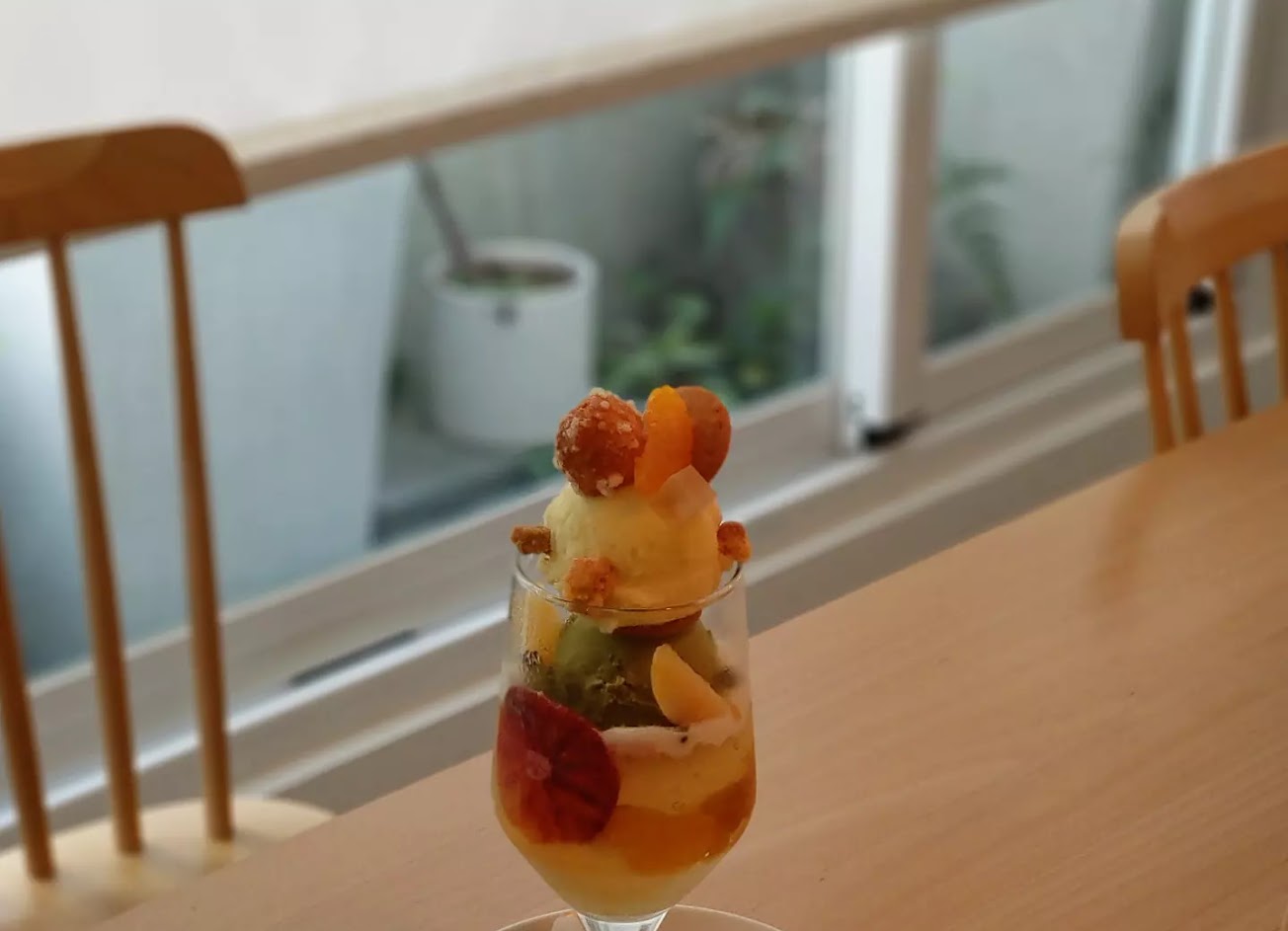 法式聖代中糖漬杏桃、四季春冰淇淋蠻好吃,柚子琥珀糖蠻特別,香橙sorbet澀味較重,價格較高