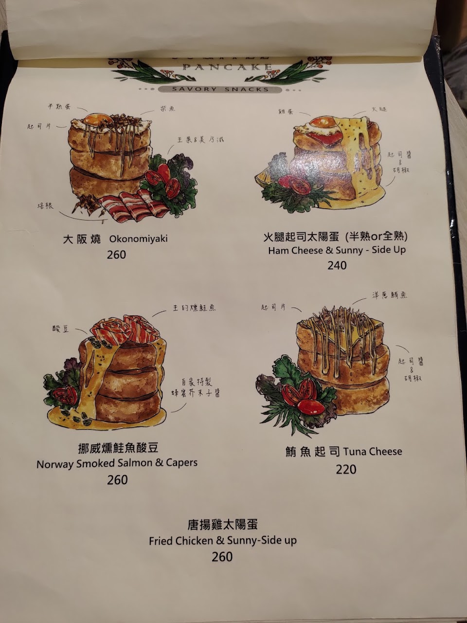 口味特別的鬆餅,有點像鬆軟的蛋糕,但是比蛋糕香氣更足。我們三個人點了四份,雖然他們主打甜鬆餅(提拉米蘇超級好吃,伯爵牛奶也還不錯,季節水果芒果還可以…)不過鹹鬆餅也是超級無敵好吃(大阪燒很有特色也十分好吃) 不只食物好吃,店家也用心裝潢,連坐在廁所旁邊都聞不到廁所味(重點是廁所裡面也好香啊~~還很貼心準備女性用品,看起來很可愛的包裝) 完全值得等待和再次回訪啊~~~~~!!