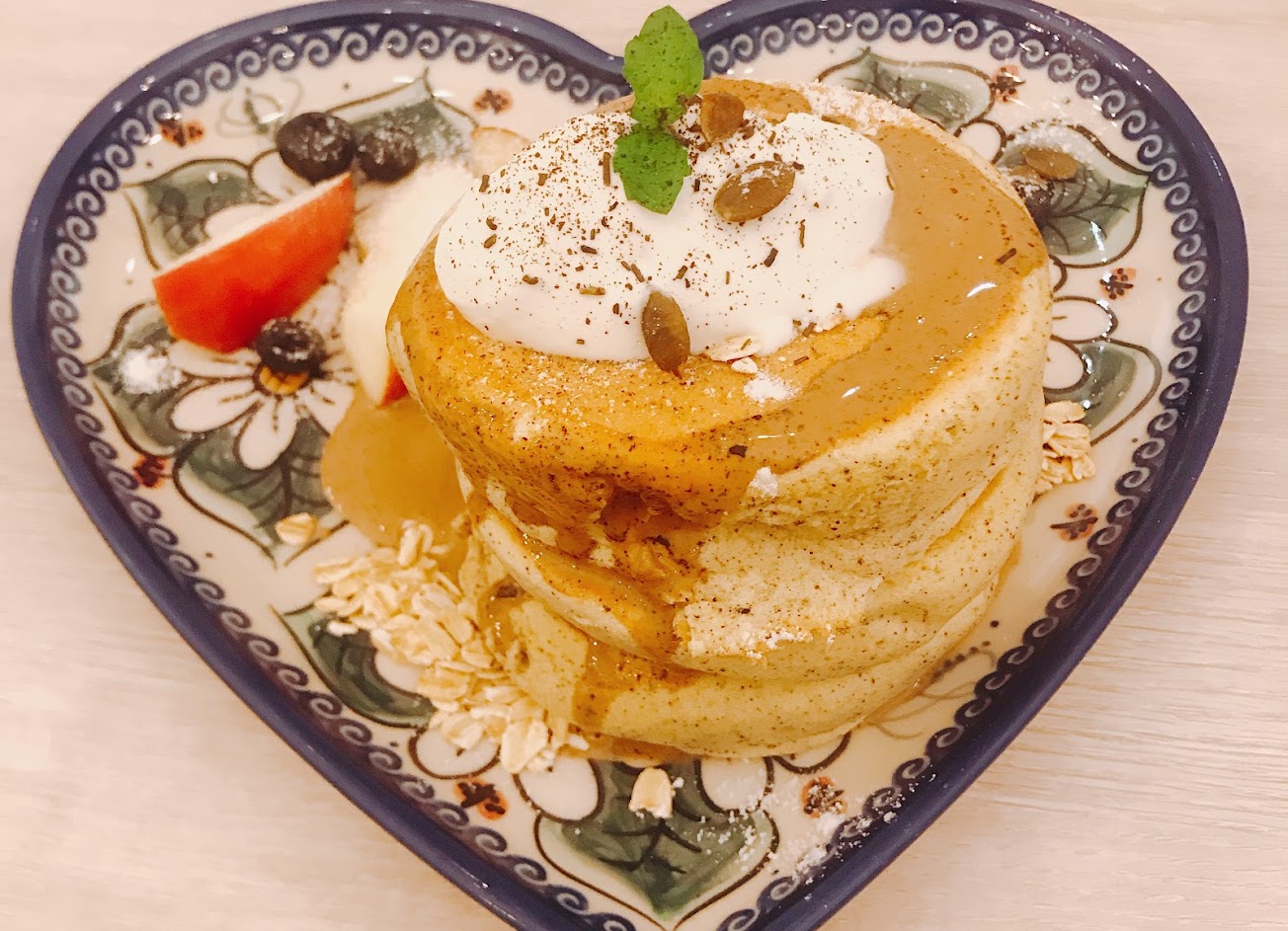 食物方面,厚鬆餅口感鬆軟算有特色,但是鬆餅的外圈部分不知是設定如此還是被熱氣所影響,變得潮濕泥狀影響口感,鹹口味的大阪燒鬆餅也用焦糖醬、五花肉也是焦糖醬,這口味上的配置也讓我匪夷所思(但豬肉很好吃)