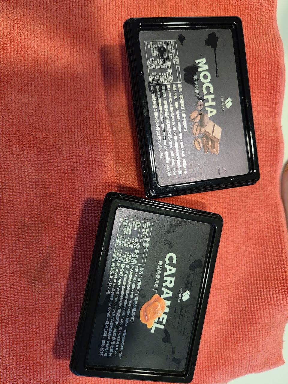 紅磚布丁是台南在地布丁品牌 包裝質感非常好? 包裝真的很漂亮 霧面黑色手提紙盒送禮很有面子 這是紅磚布丁夏日限定禮盒 一共五個口味十入 有芒果?、巧克力?、摩卡☕️、焦糖、紅豆? 我最喜歡的是焦糖 經典焦糖烤布丁?綿密布丁口感濃濃蛋香很不錯? 第二喜歡是巧克力 巧克力吃起來就是超濃巧克力牛奶的味道 甜甜的滋味甜甜的心? 小盒子打開有封膜 封膜撕開後蓋子會蓋回去蓋不太緊 但我想應該就都會一次直接吃光光啦??