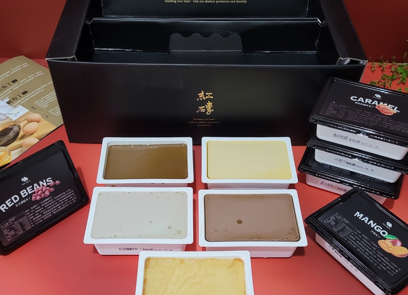 2022夏季禮盒內有傳統焦糖烤布丁、摩卡烤布丁、芒果布丁、巧克力布丁、紅豆饌輕布丁等五種口味~