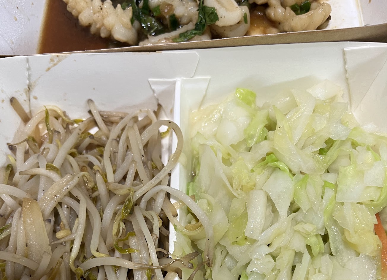 等了半個小時才來了一個高麗菜 然後再等五到十分鐘才上豆芽菜和肉 外送的來了一波又一波