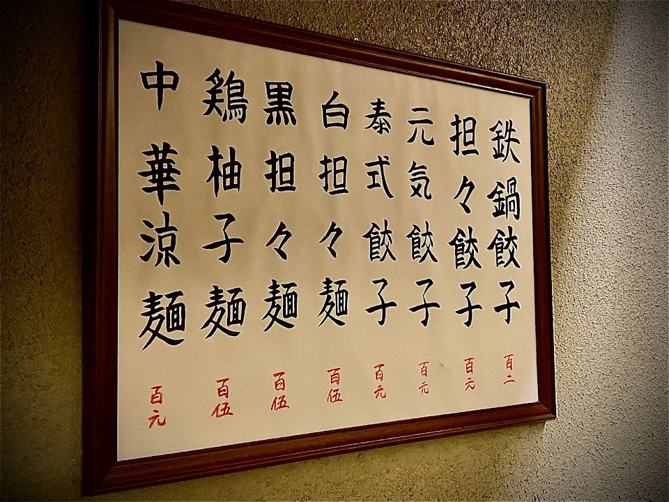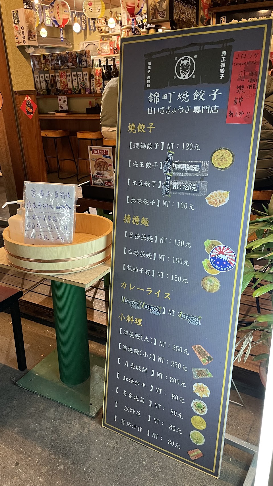 此店為日式煎餃專賣店,也是台南少數立食(立ち食い)店,立食的利一說法又可稱為立吞(立ち呑み); 店內空間小,中間為料理台,兩側空間人與人須側身才能過去; 店內主食共四項,三種餃子,一種炒手,飲品有三類,包含啤酒!