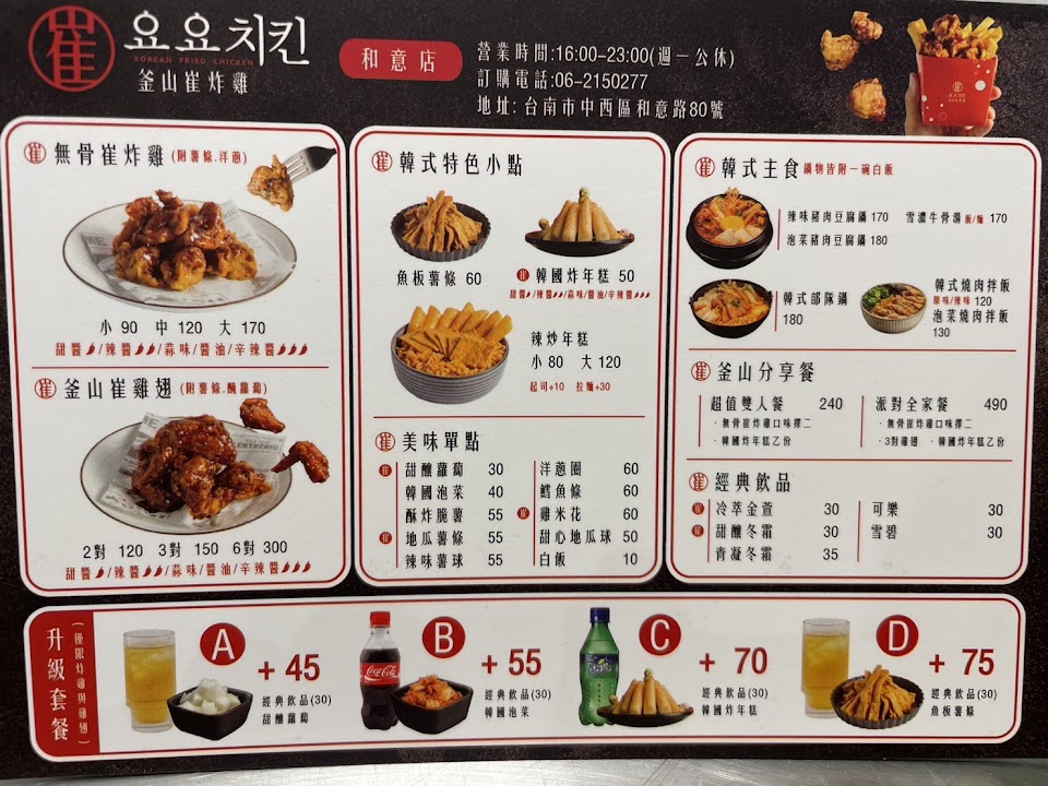 2024最新在地推薦餐廳的菜單_釜山崔炸雞-台南和意店的菜單、圖片